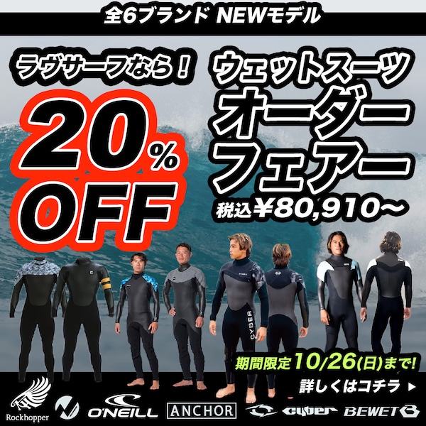 『20%OFF!24~25FWウェットスーツオーダーフェアー』の内容は!