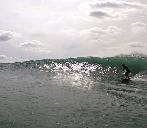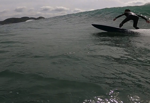 想像していたよりも強風が吹き荒れていてテイクオフするときに目潰し状態になるのですが、この『スムースオペレーター』レジンカラーポリエスター製だったので、安定して風に負けずに、落差のあるテイクオフをメイクし、セットの波を乗りまくってきました。午後は波のサイズが落ち着いてしまいましたが4〜5時間の台風セッションを楽しんできました。
