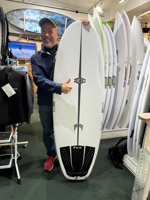 今まで愛用していたサーフボードが千葉エリアだと乗れるけど、湘南の混雑したパワーレスの波では中々楽しめなかったそうで、新たなサーフボードを検討していた所、PLACEBO『SMOOTH OPERATOR』がとても調子良いって情報をキャッチしてくださり、ラヴサーフにご来店下さいました。PLACEBO『SMOOTH OPERATOR』だけでなく、他のモデルもご説明させていただきご決断したのは、やはり『SMOOTH OPERATOR』です。小波だけでなくサイズのある波でも調子が良いのと、幅がそこまで広くないので、肩幅が狭い女性でも楽にパドルできて、波に乗れる本数が増えるので、とてもオススメです。ニューボードでぜひ楽しんで下さいね。