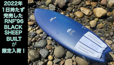 昨年2022年は入荷数18本という極端に少ない本数での限定販売で瞬殺にてSOLD OUTし、 次の入荷はいつか?という100件を超えるお問い合わせをほぼ連日いただいていたあの超人気ボード 『RNF’96』モデルの「Black Sheep Build」テクノロジーボードです!