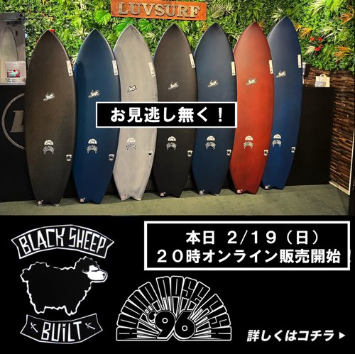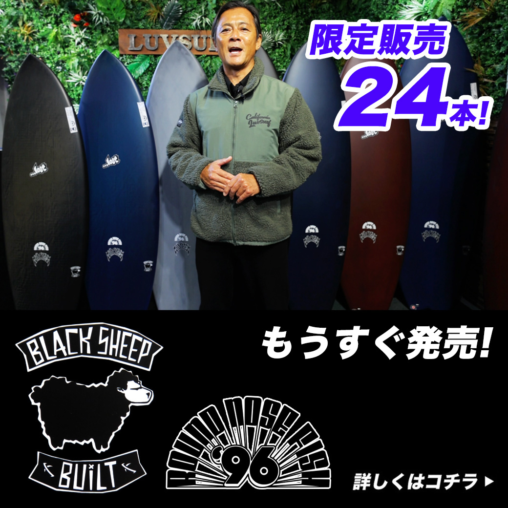 もっと詳しく知るAさんは、LOST『RAD RIPPER 』Black Sheep Built WHITE TEXTURE をお選びになりました。なんと!同じモデルで これで3本目になる「RAD RIPPER」をお買い上げいただいたお客様です。お持ちの「RAD RIPPER」は「Black Sheep Built」 以外ですべて同じ5'7"サイズで調子が良いそうです。先日「SMOOTH OPERATOR」の「Black Sheep Built」をご購入いただきしなりの良さと反発力によるスピードの伸びを気にいっていただき「RAD RIPPER」も「Black Sheep Built」で乗りたいとご購入いただきました。 Bさんは、LOST『RAD RIPPER 』Black Sheep Built WHITE TEXTURE をお選びになりました。「RAD RIPPER」を「LIGHT SPEED」で乗っていて、調子が良くて乗りやすく、気に入っているそうです、「MICK'S TAPE」の「Black Sheep Built」が調子良く「RAD RIPPER」も「Black Sheep Built」で同じようにトリアックスカーボンの反発で調子良く乗ってみたいと5'11"サイズをご購入いただきました。 Cさんは、LOST『RNF’96』Black Sheep Builtをお選びになりました。24’s Blogの発売予告をご覧になってラヴサーフWEBストアから発売になる前に、急いでラヴサーフにご来店くださいました。本来予定では、来年に購入する予定で貯金をしていたそうなのですが、気になりすぎて仕事の途中に実物をチェックしにご来店です。現在ご愛用してくださっている『RNF’96』POLYESTERがとても調子良いそうで、更に調子の良さそうな”Black Sheep Built”は絶対に乗りたいサーフボードだったので予定外でしたが、POLYESTERとの違いなどをじっくりとご説明させていただき即決して下さいました。 Dさんは、LOST『RNF’96』BLACK SHEEP BUILTをお選びになりました。短いサーフボードが好みのベテランサーファー様です。以前から『RNF’96』BLACK SHEEP BUITを狙っていたそうなのですが、すぐに完売してしまう人気モデルだった為購入できなかったそうです。今回は満を持して発売の情報をキャッチした際に迷わず決断し、めでたく手に入れていただくことができました。『SUB DRIVER 2.0』も短めでご愛用くださっており、モデル違いでの乗り味の違いや性能をぜひ楽しんでくださいね。 Eさんは、LOST『RNF’96』BLACK SHEEP BUILTをお選びになりました。ライフスタイルが変わり充実したサーフィンライフを送っている中、LOST『RNF’96』BLACK SHEEP BUILTが発売になったことを24’s Blogでキャッチして、直ぐにご決断して下さいました。今年お引っ越しをしてご近所となり、ラヴサーフの前もよく通ってチェックしてくださっていたそうです。以前からとても評判の良い『RNF’96』と『BLACK SHEEP BUILT』の組み合わせのサーフボードを手に入れる事が出来とても喜んでくださいましたよ。『RNF’96』のハイエンドEPSマテリアル『DOUBLE DART』もとても気になっているので、次は『DOUBLE DART』を狙っているとのことです。 皆様!ご来店にて沢山の新品LOST『Black Sheep Built』をご購入ありがとうございます!