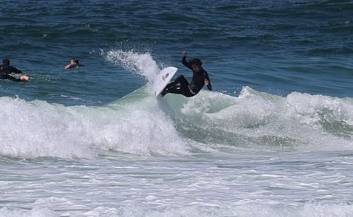 正人の得意とするカービングターンとエアーをしまくり3時間海の中で過ごしていました。