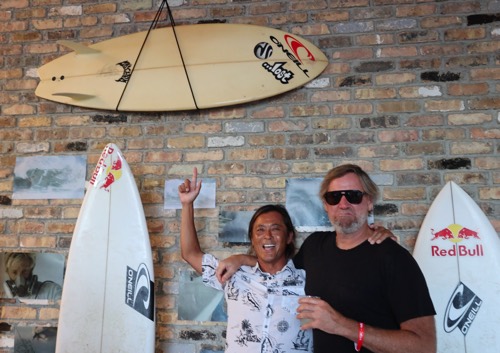 今日の西井はUS OPENがまたまたLONGボードのみ行われるとのことなので、 朝アノンを誘いチャーチへサーフにに行き、 LOSTの新しいグラス工場ゲトーハウスへ行き、 夕方からはコロヘのRNF'96モデルのNEWムービープレミアへ行ってきました。