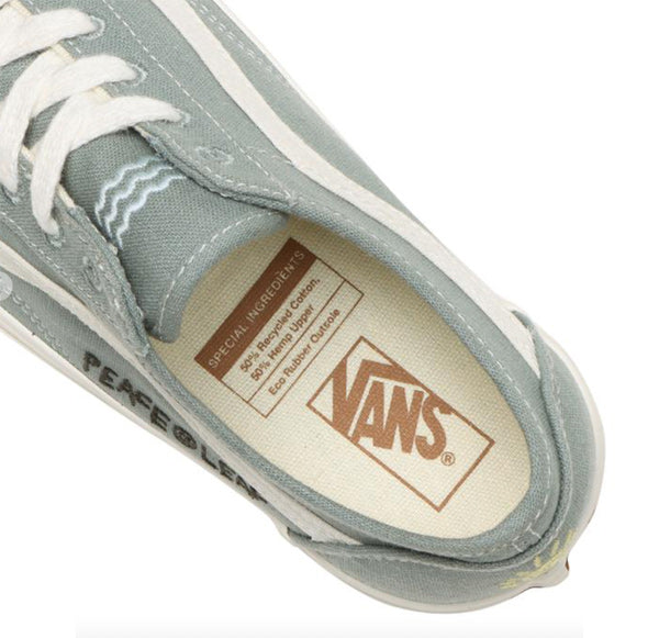The organic cotton is grown from natural seeds and grown without the use of pesticides or harmful chemicals, and the outsole is made with a new Vans rubber compound that uses natural rubber, eliminating 100% of rubber made from petroleum and fossil fuels, while maintaining the grip and durability that Vans has cultivated since 1966.