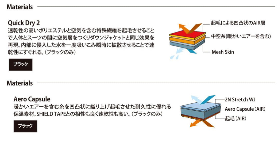 保温性の高い素材クイックドライ2と、エアロカプセルを組み合わせた、使いやすい5x3mmフルスーツです!