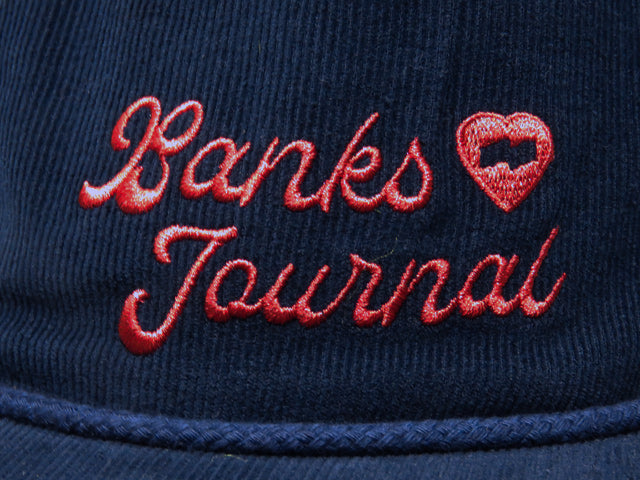 A stylish BANKS HAT with a corduroy snapback and front embroidery.