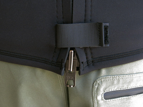 It is comfortable with a back zipper for easy putting on and taking off! The body is made of 1mm neoprene (wet suit fabric), and the long sleeves are made of rash guard material (UPF50) to prevent sunburn caused by strong midsummer UV rays. This jacket is suitable for high summer and provides not only mobility but also moderate warmth.