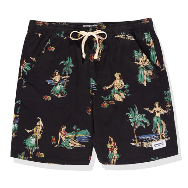 A Hawaiian design with a vintage hula girl motif. The classic graphics expressed in a faded print on the black body are sophisticated. This Perfect Hawaiian Shirt is highly recommended by the designer and exudes a sense of manliness! Of course, we also recommend the coastal style of dressing up with a set.