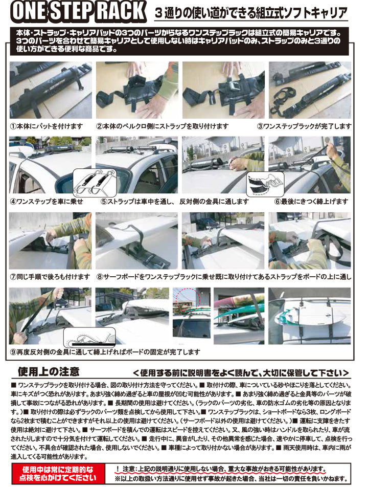 The One Step Rack is a simple, self-assembly carrier consisting of three parts: the main body, straps, and carrier pad.