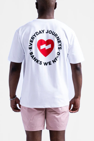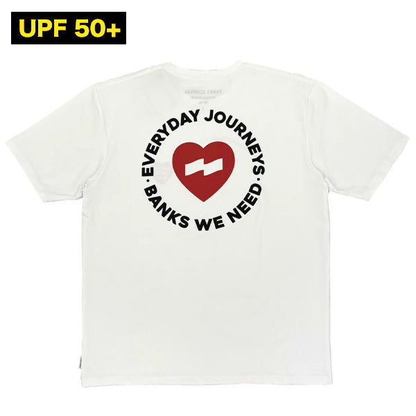 This popular graphic T-shirt from BANKS JOURNAL features the heart mark logo on the front, which has been loved since the brand was founded. Made from lightweight, quick-drying polyester material, it is smooth to wear and easy to move in. The silhouette has the same basic fit as the classic logo T-shirt. With its simple yet striking design, it continues to attract fans every season. An iconic item that is typical of BANKS JOURNAL, it fits in with any style, from surf to street to town.
