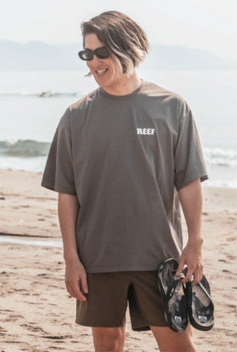 It has a simple design with a REEF logo print on the chest and a REEF logo patch on the hem.