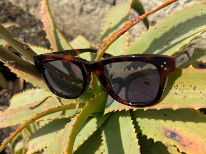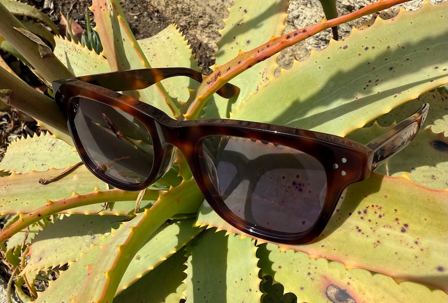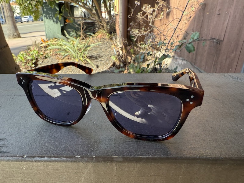 This model is a reinterpretation of the classic Wayfarer design of sunglasses that was born in 1952, and is hand-shaped from an 8mm thick plant-based acetate plate, giving it a heavy feel.