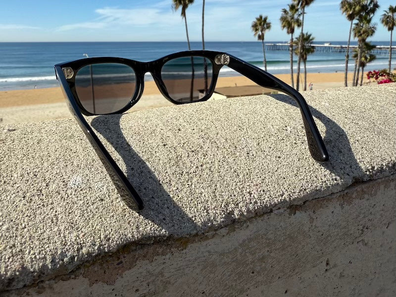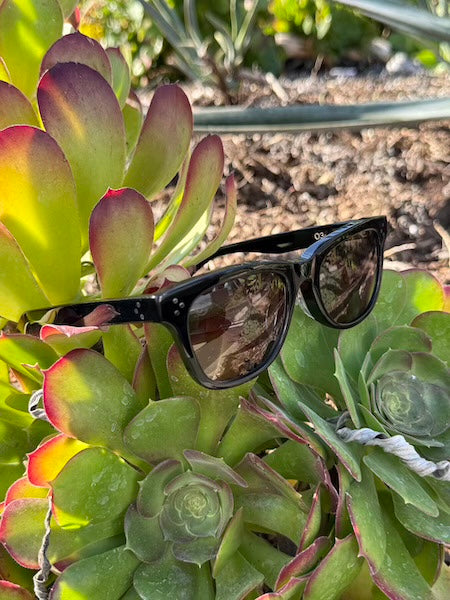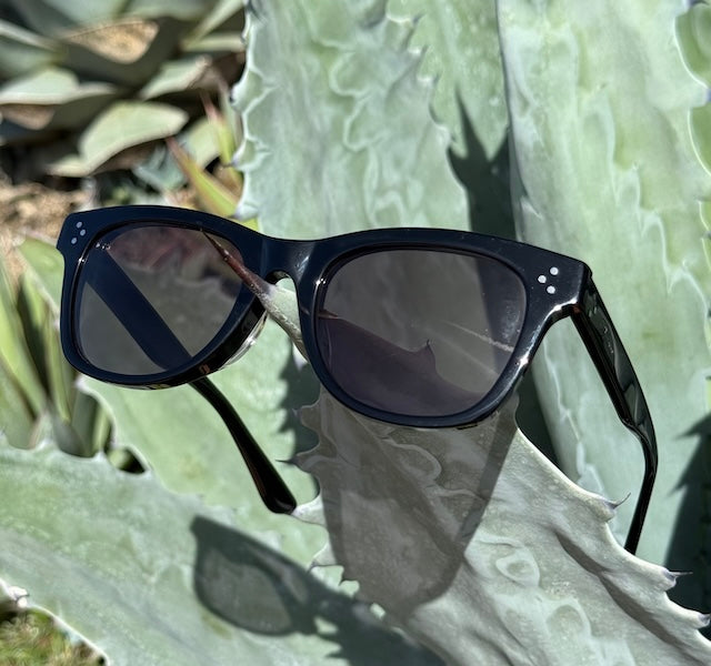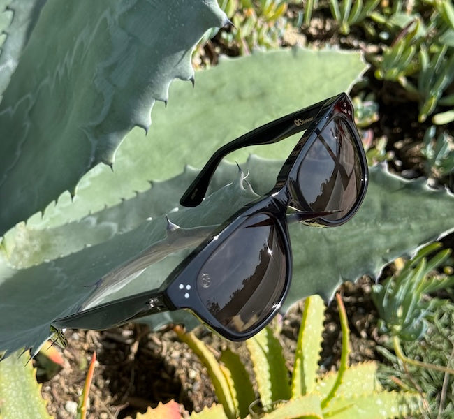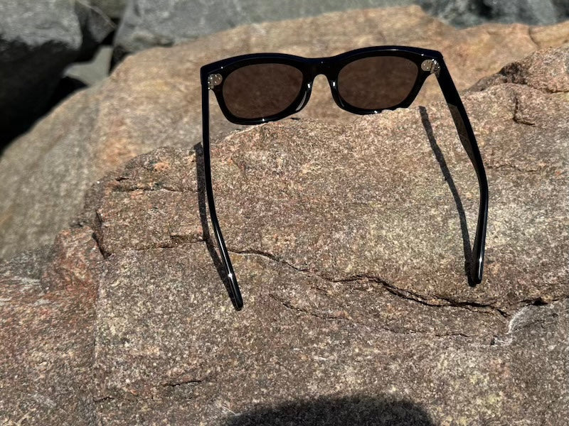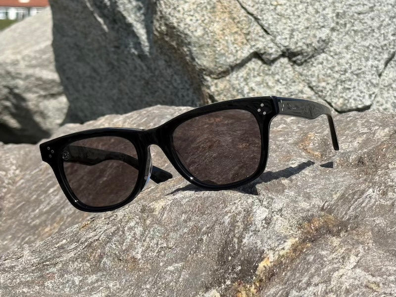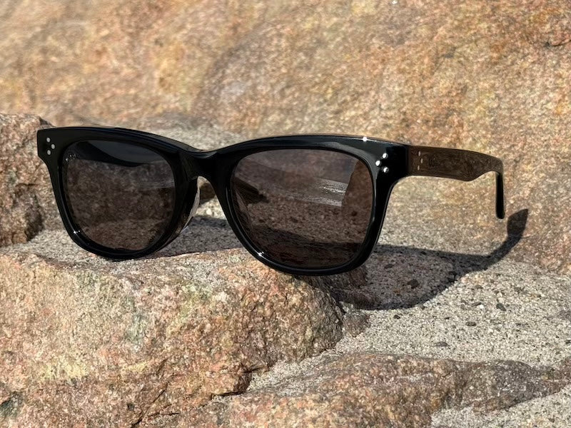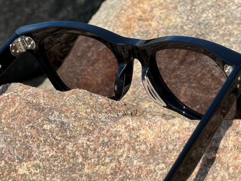 This model is a reinterpretation of the classic Wayfarer design of sunglasses that was born in 1952, and is hand-shaped from an 8mm thick plant-based acetate plate, giving it a heavy feel.