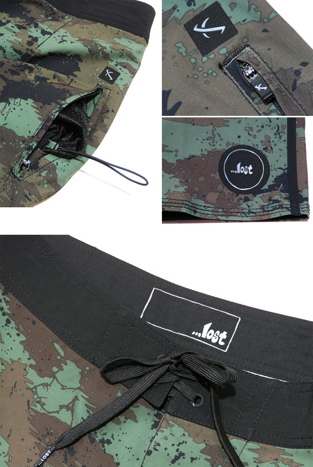 The hem has the LOST mark and the back pocket has the PLANET mark.