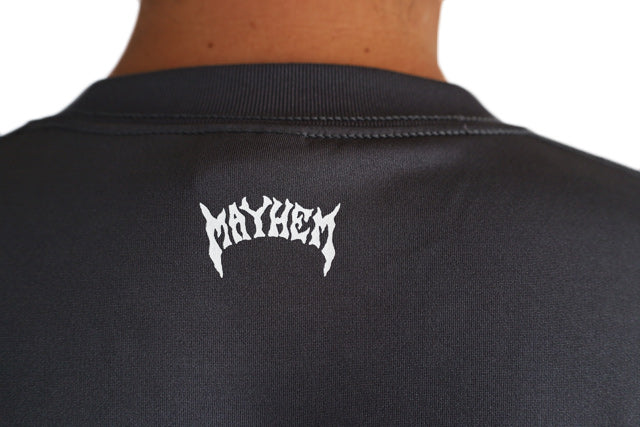 There is a "LOST" logo on the chest and a "MAYHEM" logo on the back of the neck!