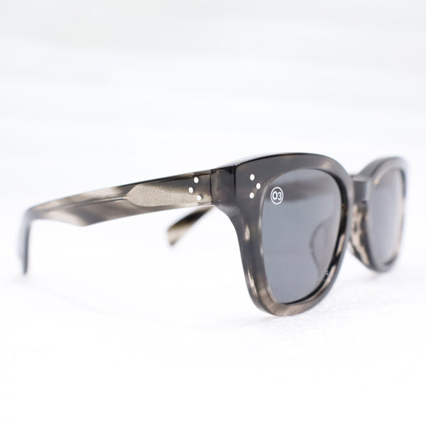 ◆ Front: Thick Boston and Wellington models inspired by the 80's ◆Rim: 8mm thick front rim model ◆Hinges: Retro style 7-leaf hinges secured with 3 pins Temples: Straight, thick temples Nose pads: The shape is high and suitable for Japanese people. By making this part transparent, the sunglasses do not look heavy and the line of the sunglasses looks neat.