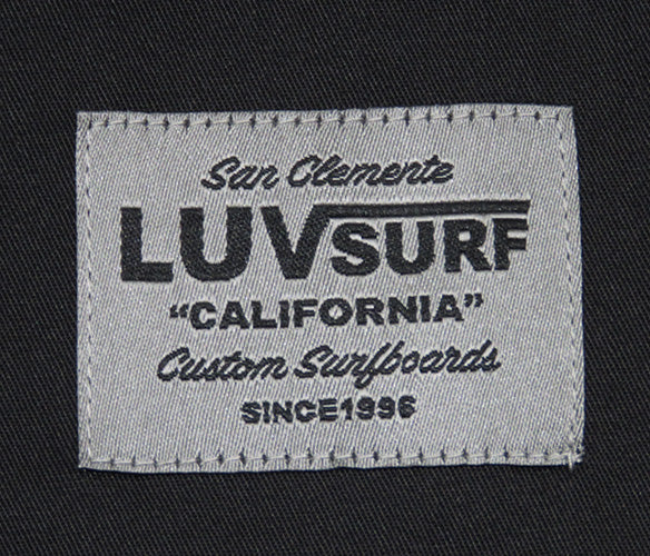 It features an original Luvsurf print on the chest and an embroidered patch on the hem.