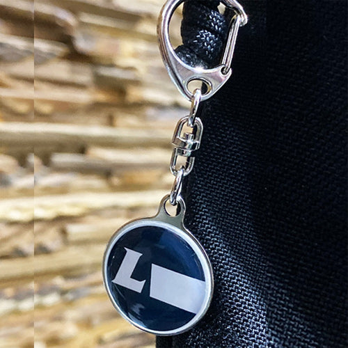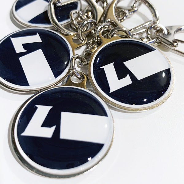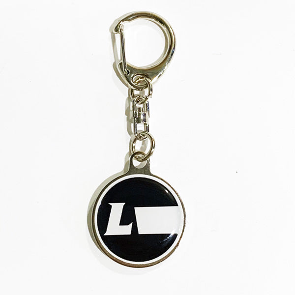 This keychain features Luvsurf's icon, the Racing Icon, and is coated on both sides with resin to give it a three-dimensional look .