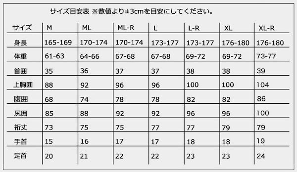 ◆Sizes: 'M', 'ML', 'ML-R', 'L', 'LR', 'XL', and 'XL-R'