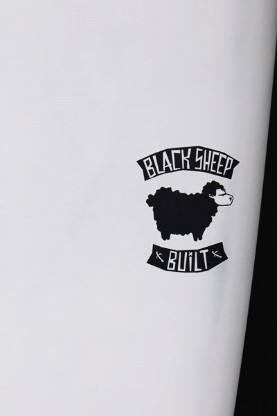 The BLACK SHEEP BUILT's black Triax carbon is textured with white paint, creating a cool texture that shows the Triax carbon hidden inside, captivating the viewer.
