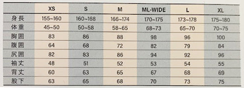 XL size guideline: Height 175-180cm, weight 70-75kg