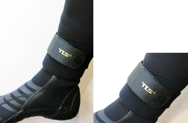 When you put on your boots, attach it to the foot opposite the leash to prevent water from getting in!