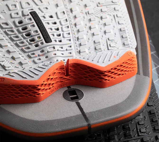 キック背面の六角形パターンは、圧縮されるとバネのように反発する仕組みとなっており、急角度を付けたキックは、決定的なトリックを繰り出すような場面で、比類のないパワーとレスポンス性を発揮してくれます。