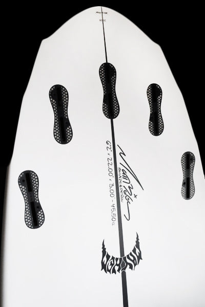 デッキ、ボトム、レールなど全面に施されたUVカットマットホワイトペイントは日焼け変色を半永久的に防ぐ嬉しいロングライフなエコフィニッシュ仕上げです。カーボンストリンガーで 格調高く仕上げられ、ブラック&マットホワイトのカラーデザインのボディには、PLACEBOサーフボードならではの”しなやかで乗りやすく”波に乗った時のことを最重視して設計されたフレックス性能がしっかり搭載されています。