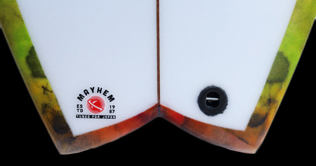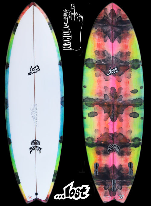 『RNF』モデルは、世界中のFISHボードのデザインに影響を与えてきただけあってエピソードもいっぱい。25年前にはまだティーンエイジだった現役WSLワールドツアー選手の中には、LOSTが当時発売した「5’5” X 19 1/4”」ムービーで「RNF」に乗る映像を見て影響され、実際に「RNF」乗っていたというワールドツアー選手がいたり、ある有名なプロサーファーは「1本しかボードを持つことができないならどんなボード?」という質問に対して『MAYHEMのRNF』だねと、LOSTへRNFをオーダーする時に語ったこと、、、などなど。