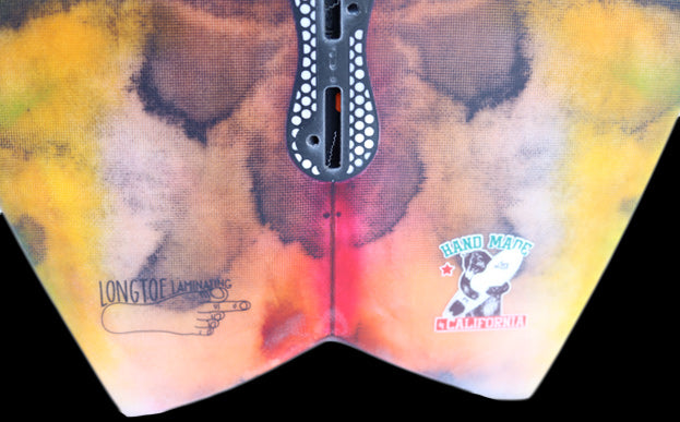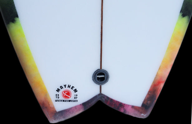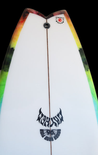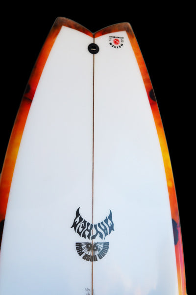 ノーズから12インチ、テールから12インチ、両方の幅は同じ。テールに追加されたカーブは、約6インチ幅でさらに正確になりました。 1996年当時のオリジナル『RNF』の成功の1つは、他にあったほとんどの「FISH」とは異なり、テール幅が一般的なハイパフォーマンスショートボードのテール幅に近くて細いことでした。 これにより、通常のテール幅の広い「FISH」デザインよりも、はるかにテールをコントロールしてサーフできるのです。