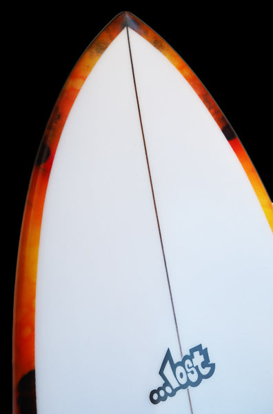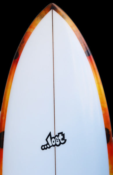1996年(平成8年)、サンクレメンテ・カリフォルニアの小さなシェイプルームから登場した誰も見たことがない、ノーズが丸くてテールが細いハイパフォーマンスフィッシュボード「RNF・ラウンドノーズフィッシュ」。その後、世界各国のブランドがコピーし、長い歴史を重ねてきた一方で、次々と派生モデルを生み出す為のベースデザインでもあり、今では当たり前のパドルが楽でテイクオフが早く、ショートボードのように動けるフィッシュボードを最初に提案したのがLOST「RNF」でした。