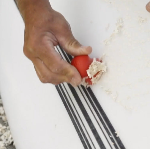 円形のデザインにより、ボードの圧痕やへこみについたワックスを簡単に取り除くことができます。