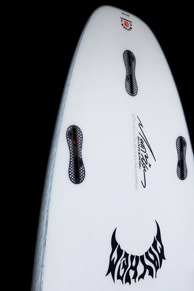 BlackSheepBuilt ボードは、超軽量の 1.5 ポンド(680グラム)の EPSブランクス(フォーム)を最先端マテリアルとしてコアとして使用し、オリジナルな「Triax」(トリアックス) 高品質カーボン ファイバーを利用して、高速で反応が良く、生き生きとしたサーフボードになるように作成しました。 軽くて しなやかでありながら、驚くほど強いサーフボードです。