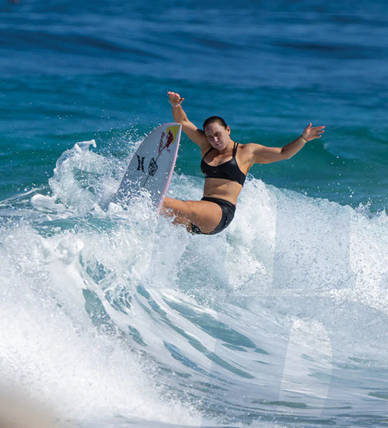 CARISSA MOOREをはじめとする女性サーファーのためにデザインされ、カスタマイズされたこのユニークなパッドは、テールの幅が狭く足のサイズが小さいボードにフィットするようアンダーサイズに作られています。