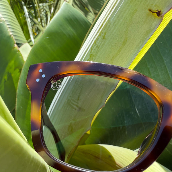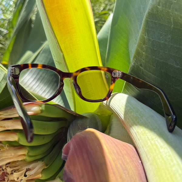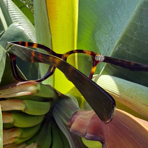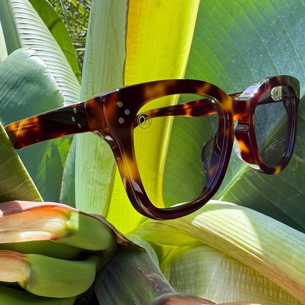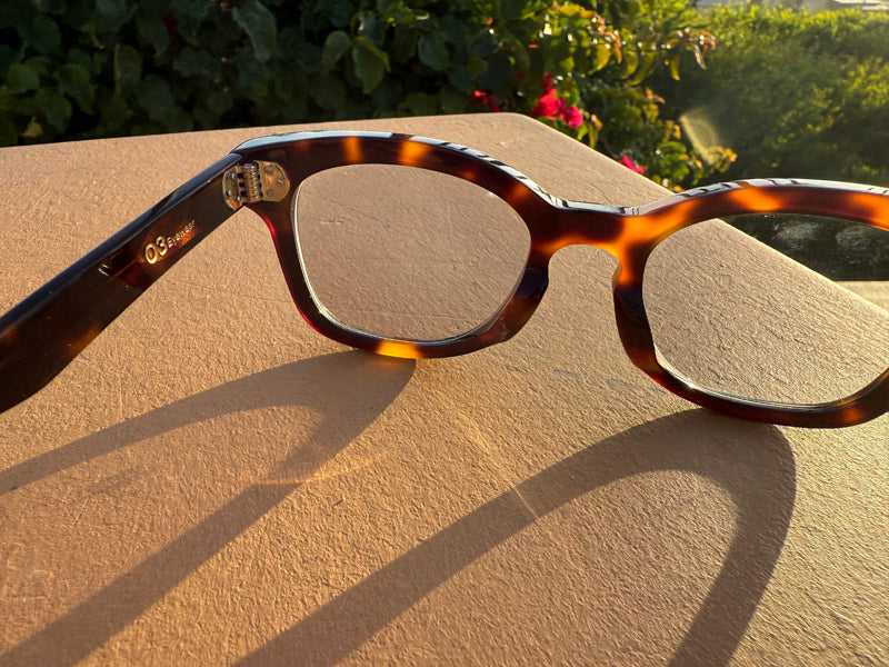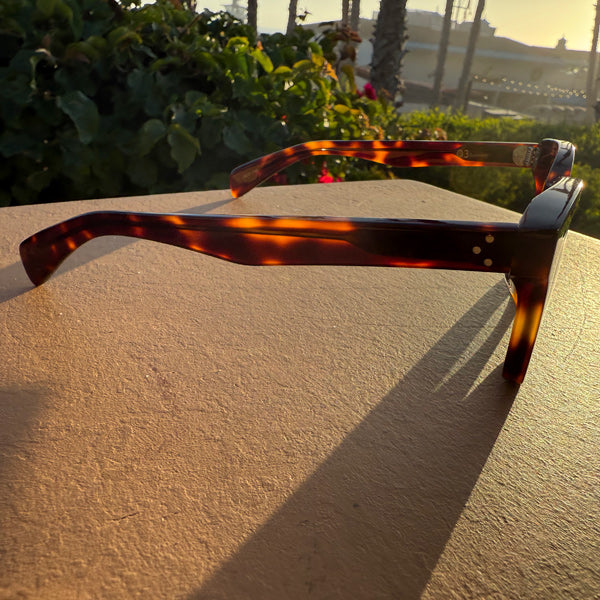 ・フレームは、大量生産される金型成形でなく植物由来の『アセテートプレート』を削り出した『ハンドシェイプ仕上げ』