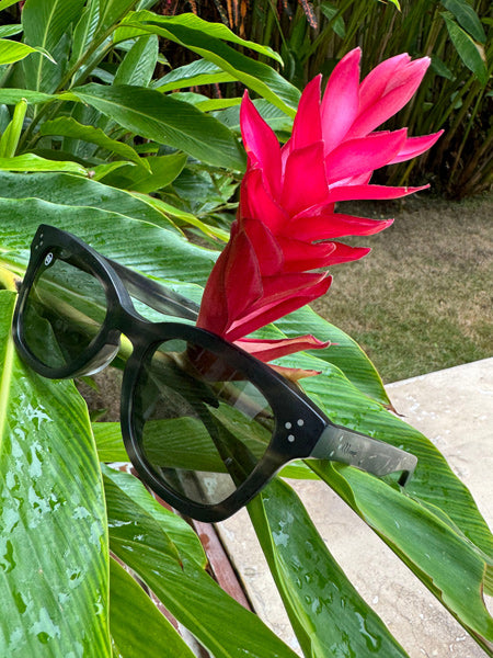 ・フレームは、大量生産される金型成形でなく植物由来の『アセテートプレート』を削り出した『ハンドシェイプ仕上げ』
