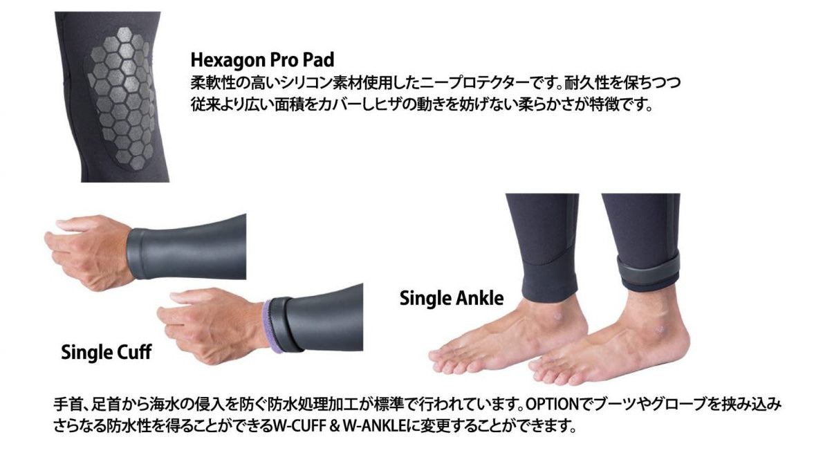 保温性の高いクイックドライ素材とエアロカプセルとエアドライを組み合わせた、使いやすい5x3mmフルスーツです!