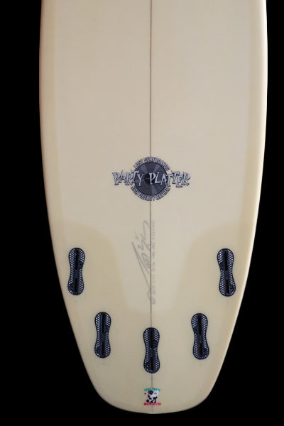 DOUBLE DARTサーフボードは本体の色が黒い為に、バキュームグラス手法ならではのカーボン繊維のラインが傷のように見えたり、通常のサーフボードと同じように製造過程でできる傷や、フィンガープリントがより見えている場合がございます。それらはDOUBLE DARTサーフボードのパフォーマンス性能やご使用には問題ありませんのでご安心してお求めください。