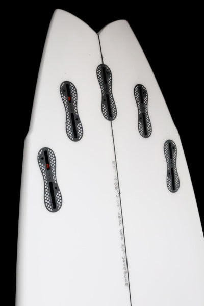 DOUBLE DARTサーフボードは本体の色が黒い為に、バキュームグラス手法ならではのカーボン繊維のラインが傷のように見えたり、通常のサーフボードと同じように製造過程でできる傷や、フィンガープリントがより見えている場合がございます。それらはDOUBLE DARTサーフボードのパフォーマンス性能やご使用には問題ありませんのでご安心してお求めください。