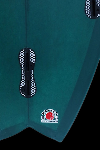 DOUBLE DARTサーフボードは本体の色が黒い為に、バキュームグラス手法ならではのカーボン繊維のラインが傷のように見えたり、通常のサーフボードと同じように製造過程でできる傷や、フィンガープリントがより見えている場合がございます。それらはDOUBLE DARTサーフボードのパフォーマンス性能やご使用には問題ありませんのでご安心してお求めください。