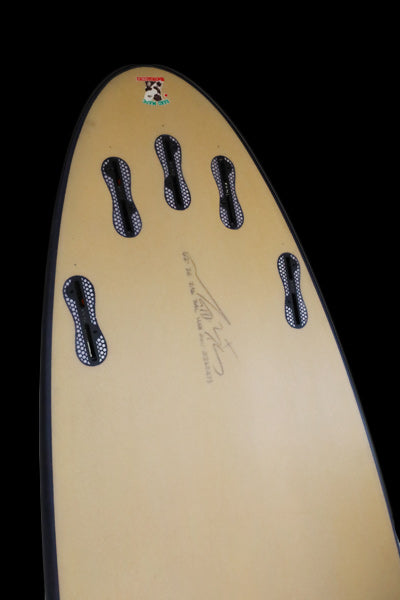 DOUBLE DARTサーフボードは本体の色が黒い為に、バキュームグラス手法ならではのカーボン繊維のラインが傷のように見えたり、通常のサーフボードと同じように製造過程でできる傷や、フィンガープリントがより見えている場合がございます。それらはDOUBLE DARTサーフボードのパフォーマンス性能やご使用には問題ありませんのでご安心してお求めください。