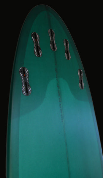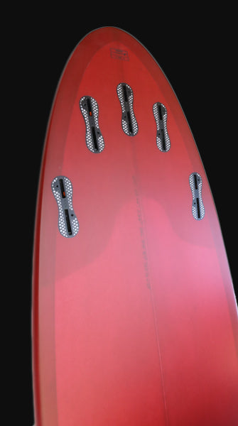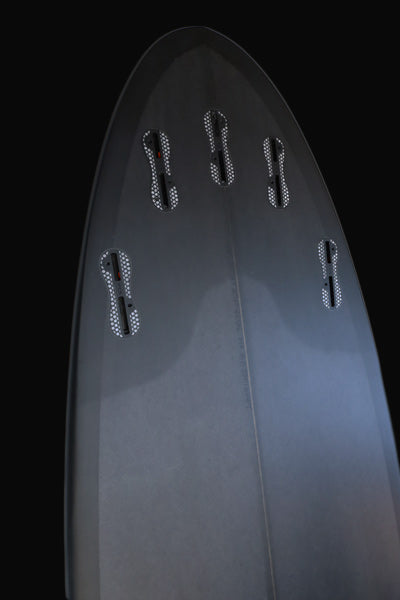 DOUBLE DARTサーフボードは本体の色が黒い為に、バキュームグラス手法ならではのカーボン繊維のラインが傷のように見えたり、通常のサーフボードと同じように製造過程でできる傷や、フィンガープリントがより見えている場合がございます。それらはDOUBLE DARTサーフボードのパフォーマンス性能やご使用には問題ありませんのでご安心してお求めください。