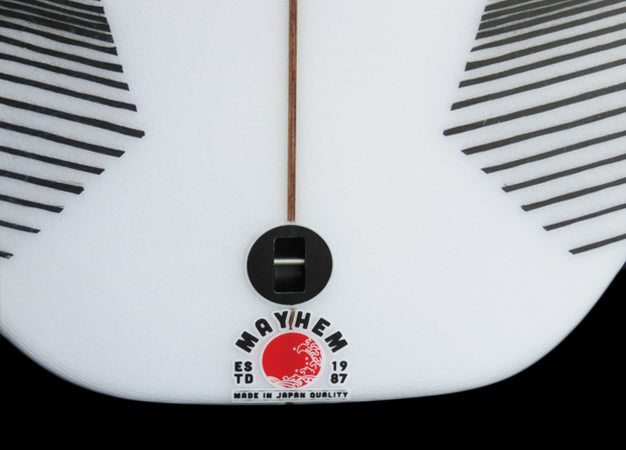 DOUBLE DARTサーフボードは本体の色が黒い為に、バキュームグラス手法ならではのカーボン繊維のラインが傷のように見えたり、通常のサーフボードと同じように製造過程でできる傷や、フィンガープリントがより見えている場合がございます。それらはDOUBLE DARTサーフボードのパフォーマンス性能やご使用には問題ありませんのでご安心してお求めください。