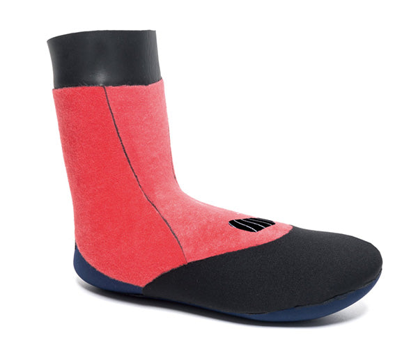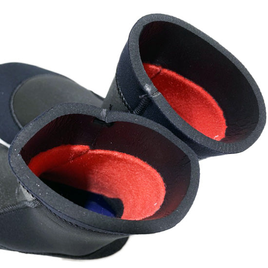 純国産ソックス。足の甲にソフトラジアル素材を装備し生地表面に冷水の付着がないため保温機能が最大限に発揮させると共に、足の甲のホールド感も向上!