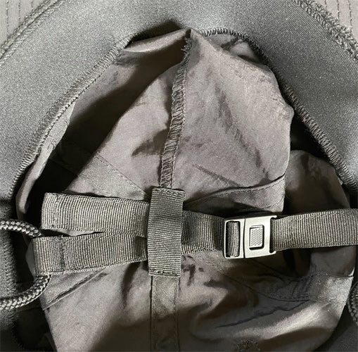 流れ留めリーシュを外し、耳と顎のストラップをキャップの内側に収納すれば、デイユースで使用も可能。