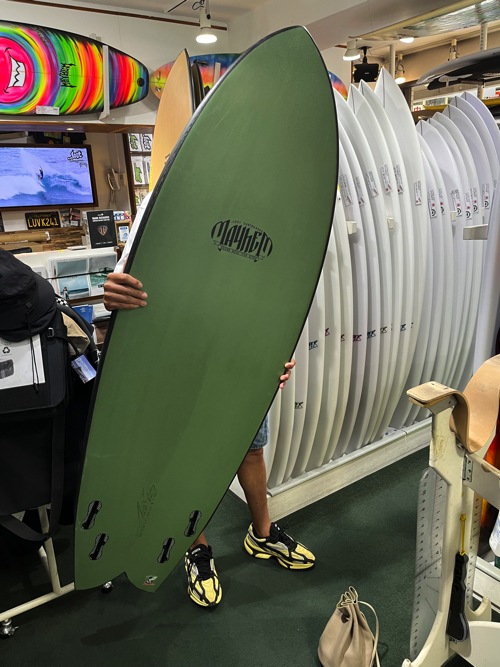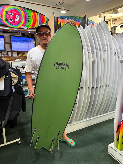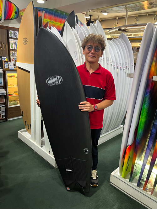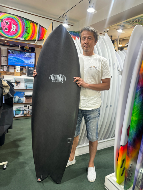 DRIVER,SMOOTH OPERATORと波によって使い分けているそうですが、短くて浮力のあるボードも気になっていたそうです。