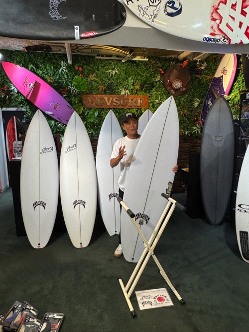 了解更多カリフォルニア滞在中の西井は、メイヘムの案内で最新ボードが制作されているファクトリー『バーシャムス』へ潜入してきました。 この『バーシャムス』ファクトリー内では現在ホリデーシーズンへ向けて2026年の新モデル「フォーミュラー1」が所狭しと制作されていました。 この「フォーミュラー1」は2026年先行モデルとして発売される新モデルで2025年WSLワールドツアーの試合でチームライダーたちが使い好成績を収めたモデルです。 一般的には「ドライバー3.0」として認知されていましたが、WSLの試合を実況するライブで話するアナウンサーたちは「ドライバー4」に乗っていると何度も試合で話していたのをご存知でしょうか??? この「ドライバー4=フォーミュラー1」は「ドライバー3.0」から進化したものではなく、全く新しい別シェイプデザインです。なので「ドライバー4」とは呼ばずに「フォーミュラー1」としてリリースします。 この「フォーミュラー1」と言うモデルは、長年のLostサーフボードユーザさんなら知っているかと思いますが、過去にもこの同じ名前のモデルがあったのですが、その「フォーミュラー1」を最新バージョンにしたものが2026年リリースされる「フォーミュラー1」通称『F1』エフワンになります。2025年ヤゴドラをワールドチャンピオンに導いたボードがこれです。 ドライバー3.0よりもやや細身でロッカーも若干だけありレールは薄く削がれています。 シャープに動く速いボードで、とにかくチームライダーたちが『速い!』と絶賛しているモデルです。 「フォーミュラー1」モデルは、アメリカでは11月中頃に限定本数リリースされ、日本では年末頃にかけて限定本数を2026年先行発売予定となっていますので皆さん楽しみにしていて下さい。 ハイパフォーマンスモデルユーザの方はLOSTチーム達と同様に必修になるモデルとなりますね!
