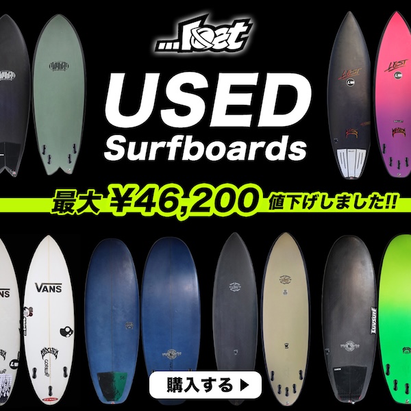 こんにちは。スタッフのコウヘイです。 皆様!要チェックです! 他店ではお目にかかることが出来ないUSEDボードがラインナップしている、ラヴサーフ『USEDボードコーナー』のサーフボードの価格改定を行い、最大で¥46,200もお得に購入できる様になりました! [ap_show_item 120945] 『羊の皮を被った狼』と比喩されるぐらい、見た目のぼってりとしたアウトラインからは塑像出来ない、運動性能で人気のモデル『RNF-RETRO』の厳選中古ボードが¥37,400もお得になりました! 早いテイクオフ性能と想像以上の運動性能でスタイリッシュな大人サーファーにピッタリの1本です。 鮮やかなレジンカラーが入った貴重なUSEDボードに仕上がっています。 人気の大きめサイズ! [ap_show_item 368568] 超高級なMade In USA製のカスタム『3.0 STUB DRIVER』! しかもBlack Sheep Builtです! 成長盛りのキッズサーファーにぴったりのサイズです! DRIVER3.0モデルをステップダウンさせた3.0 STUB DRIVER。 ハイパフォーマンスモデルでは主流となっているROUND TailとSQUASH Tailの中間性能を持つTHUMB Tail仕様! THUMB Tailにすることで推進力、ホールド性能が向上しスピーディーで正確なサーフィンを可能に! ほぼ新品のBlack Sheep Built USAカスタムを¥149,050で購入出来るチャンスをお見逃しなく! [ap_show_item 354672] ボトム面には”LONG TOE”によるレジンアートが入っており、乗るのがもったいなくなるぐらい鮮やかな1本が¥46,200も値下げになりました! こちらのボードでオシャレで海でクールにライディングすればカッコ良さ一番です!!!!! 『BEAN BAG』と言うモデルでカリフォルニア・サンクレメンテの小波でも楽しめるように設計されたミニボード。ロッカーも強くはなく、テールエンドにやや強めのロッカーが入っていて、掘れる波にも対応できるようノーズロッカーもほどよくあります。 [ap_show_item 120029] 羊の皮を被った狼と比喩される程、見た目とは裏腹に運動性能が高いトラディショナルなフィッシュモデル『RNF-RETRO』”西井プロ”使用の厳選中古ボードが¥46,200もお得になりました! ボトム面には”LONG TOE”によるレジンアートが入っており、乗るのがもったいなくなるぐらい鮮やかですよ! 状態も良く長くご愛用していただけますよ! [ap_show_item 368156] 超高級なMade In USA製のBlack Sheep Builtが¥25,300もお得になりました! 「オトン」こと”ヤスシ・ムラタ”氏がカスタムオーダーした1貴重な1本です! 大人サーファー向けのショートボーダー専用ミッドレングス! ボトム面にエアブラシカラーが入っているので、日焼けの心配が無し! LOSTから男性でも女性でも乗れるミッドレングスモデル! パドリング力を必要とせずに腕が疲れにくくスムースに最後まで波を乗りきれる。 ストックディメンションよりもファットにし、更に乗りやすく!更に速いですよ! [ap_show_item 359249] 大きめサイズの『SUB DRIVER 2.0』THUMBテール、DOUBLE DARTもお得なプライスに値下げしました! 6’1”での「SUB DRIVER2.0」でDOUBLE DARTは中々出回らない貴重な中古となります! 『SUB DRIVER2.0』モデルで、テールの形状は「Thumb」というスカッシュとラウンドの中間性能を持つマニアが唸る魅力的な形状です。 製作に高度な技術と手間や時間がかかりとても貴重であることはひと目で理解していただけると思います。 LOSTの中で1番高価になるボードですが、耐久性は見た目の通りのライフタイムユーズ対応で、LOST史上最高強度を誇ります。 今回ご紹介したい以外にも様々なUSEDボードが値下げし、お得なプライスになりましたので、ラヴサーフ『USEDボード』コーナーをぜひチェックしてくださいね! 『USEDボード』は>>>コチラからどうぞ!