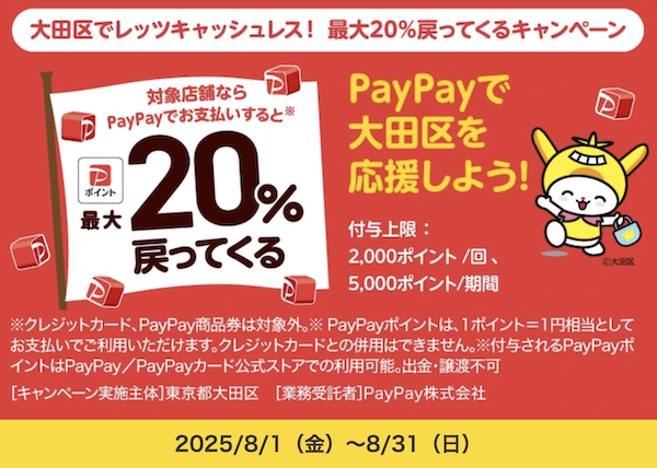 『大田区でレッツキャッシュレス!最大20%戻ってくるキャンペーン』の内容は、